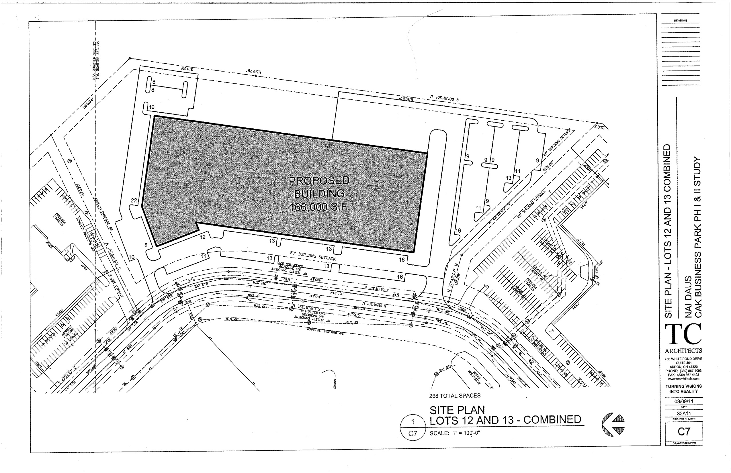 Note that lot 12 can be combined with adjacent lot 13, creating 11.632 acres that could accommodate a 166,000 square foot building with 268 parking spaces.